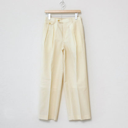 - Design: Trousers tailored with a voluminous wide straight silhouette. Two tucks at the waist give room around the thighs, giving it a powerful silhouette that falls all the way to the hem. Zip fly on the front. Designed with vertical pockets on both sides of the waist and beaded pockets on the back. Cupro lining on the back of the thighs provides reinforcement and reduces the stress of wearing.