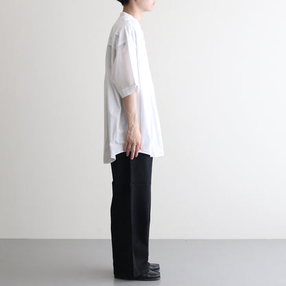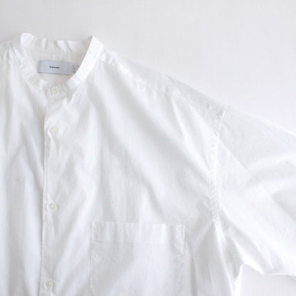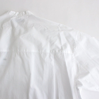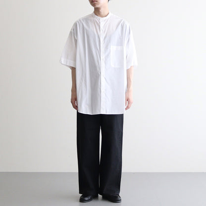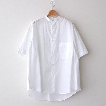 Graphpaper's oversized shirt. The collar is a clean band collar specification, and high-grade shell buttons are used for the buttons. Pocket on the left chest. The body and shoulder widths are generously wide, creating a voluminous oversized box silhouette that is worn loosely with the shoulders dropped. Unique shape balanced with a generous body width. This piece features a relaxed, comfortable fit and very clean lines.