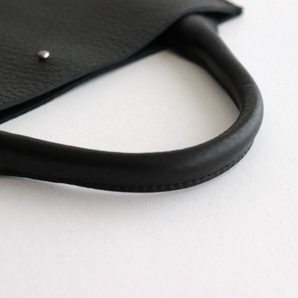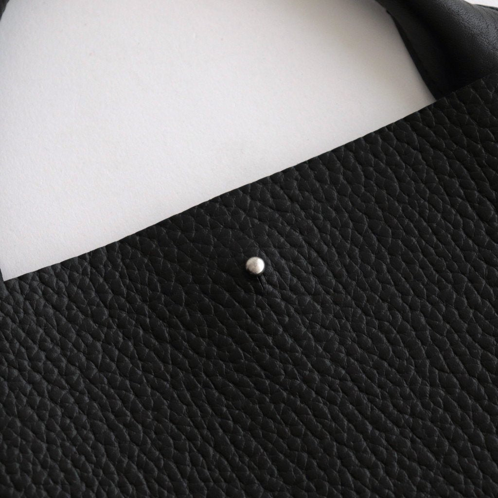 Hender Scheme fringe bag. The fringe that protrudes from the bag has an airy design that sways with every step. The main body and handle are made of grained leather that feels very comfortable in the hand. The more you use it, the more its texture will improve and the atmosphere will improve. The bottom is gusseted with darts, giving it a three-dimensional silhouette. The size is perfect for short outings and can be used by both men and women. It would also be great as a gift. Hender Scheme foil stamping.