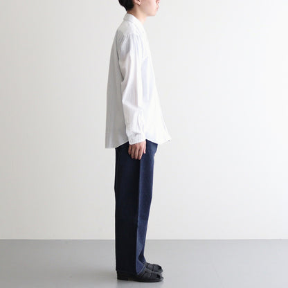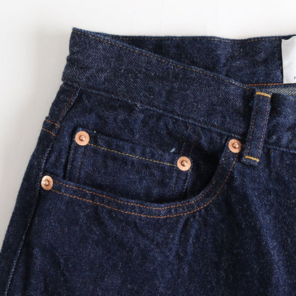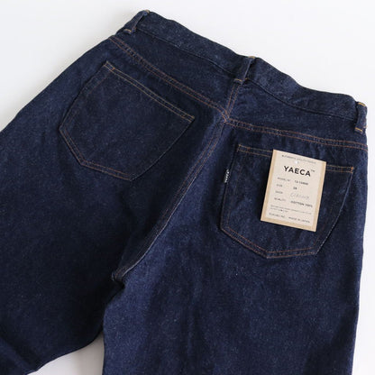 These denim pants have long been a favorite as YAECA's standard model. The authentic five-pocket design has a universal appearance. Made of YAECA's original 13-oz. selvedge denim, with every step of the process from yarn selection to weaving. The fabric is double-washed after production to remove excess indigo dye and stabilize the indigo hue, and then sun-dried to create a natural wrinkled appearance and blend in with the fabric. YAECA's original indigo denim has a strong and fresh bluish hue, and the fading and wrinkling that occurs as the jeans are worn for a long time will allow you to appreciate the quality of these jeans even more as they grow. The thickness and texture of the regular-ounce fabric will make them a pair of jeans that you can wear for a lifetime.