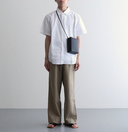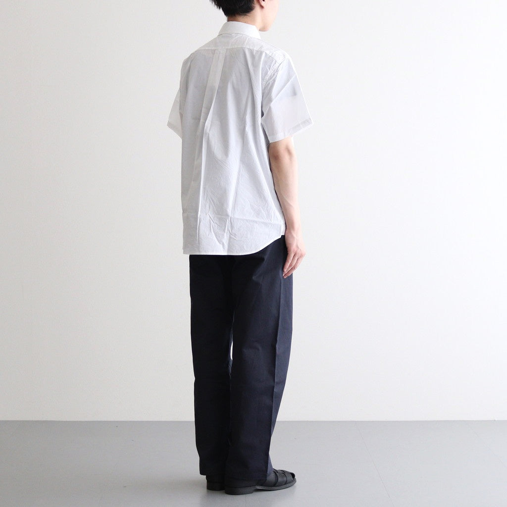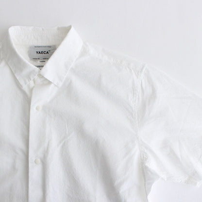 YAECA's standard comfort shirt series. This is a relaxed silhouette piece with short sleeves and a relaxed body width and length. The relaxed balance of the shirt is not too oversized, so it can be worn with a variety of outfits. Stitchless tailoring with as little sewing as possible on the front side gives it a minimalist appearance. Hand pockets at the waist.