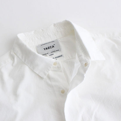 The fabric is a high-density woven cotton textile. The fabric is washed and finished, giving it a soft and natural wrinkled appearance while maintaining its firmness, giving it a gentle impression. The white color gives it a clean look. The more you wear it and the more you wash it, the more the texture will increase, which is typical of YAECA's simple fabrics.