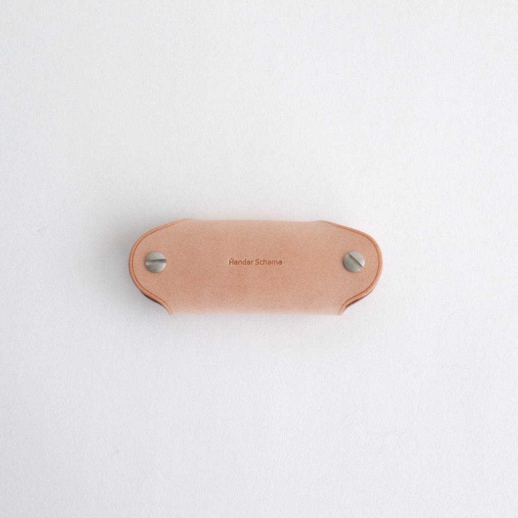 Hender Scheme key case. This product is made of vegetable tanned cow leather that is rich in oil and has no lining. The leather is hard at first, but the more you use it, the softer it becomes and the better the texture will be. The design is designed to be used with a removable set screw made by the original. Embossed with Hender Scheme.