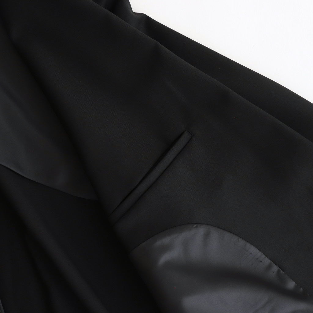 A simple, regular-fit, two-button jacket. The silhouette flows along the wearer's shoulders and the pattern work is characterized by its elegant fall. The jacket has a clean silhouette with a comfortable fit. Patch pockets on the left chest and both sides of the body, and an inside pocket on the left side are also designed.