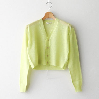 KID MOHAIR SHEER KNIT CARDIGAN #LIME YELLOW [A25SC04FG]