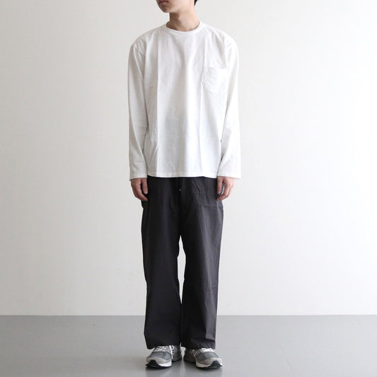 YAECAオリジナルの丸胴ボディーを使用したベーシックな長袖カットソー。着丈はやや短めでバランスを調整したボックスシルエット。左胸にポケットを配置。アールの付いた肩のラインによって動きが制限されにくく、とても快適に着用いただけます。