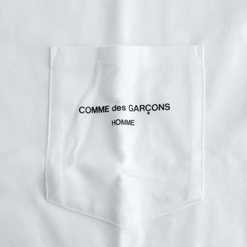 肩周りや身幅に程良くゆとりを持たせた上品な印象のレギュラーシルエット。ネックラインを同素材のリブでバインダー処理を施すことで耐久性を高めています。左胸ポケットにCOMME des GARCONS HOMMEの小さなプリント入り。