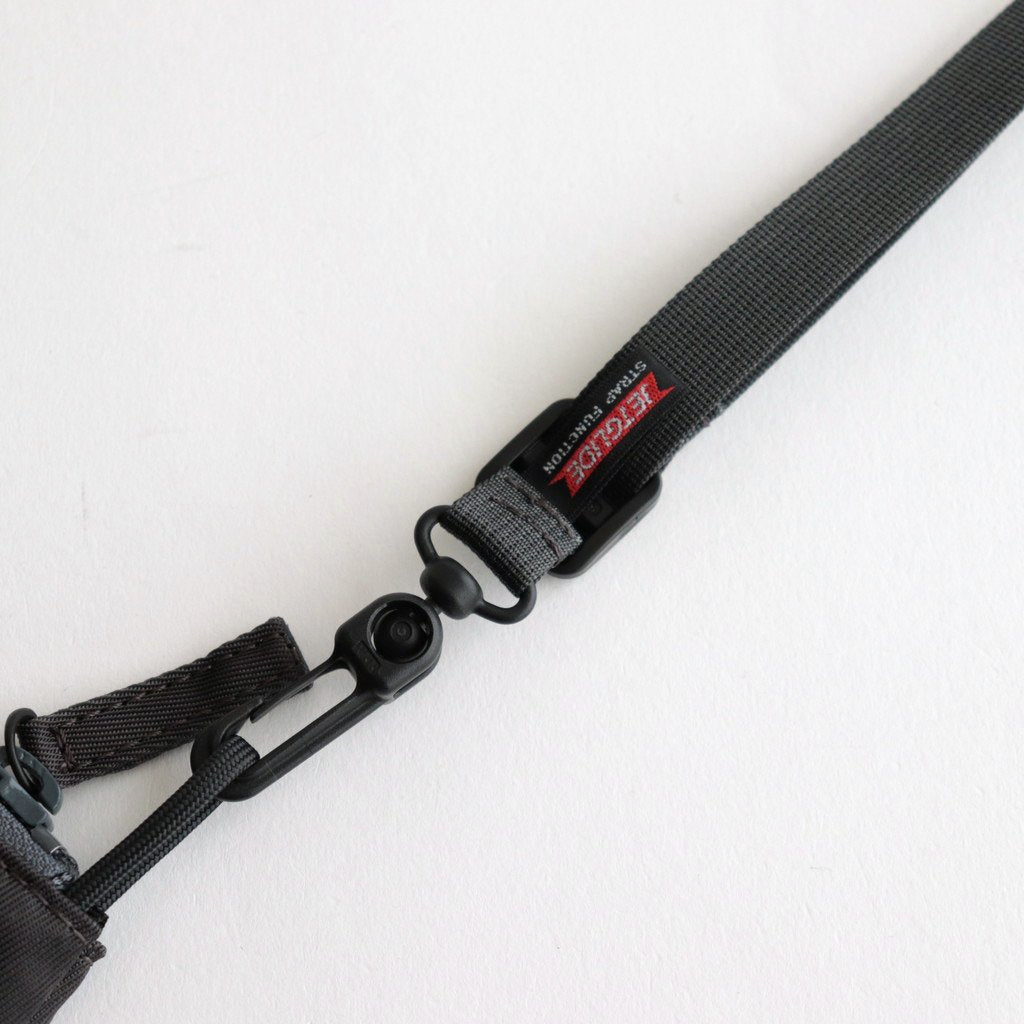 本体には極細のナイロン繊維を用いた超高密度のツイル織り生地を使用。しなやかで滑らかな質感に加え、品のある光沢を発する生地となっています。程よい大きさのメイン収納部に加え表側にも一回り小さいポケットを設計。無駄を削ぎ落としたミニマルな設計となっているため、それ以外に特に装飾は施されておりません。ストラップ部分は取り外し可能なJETGLIDE製のウェビングテープタイプを採用。JETGLIDEの特別な機構によって素早く伸縮調整が可能なほか、本体の取り回しが楽に行える為バッグへのアクセスも容易になっています。