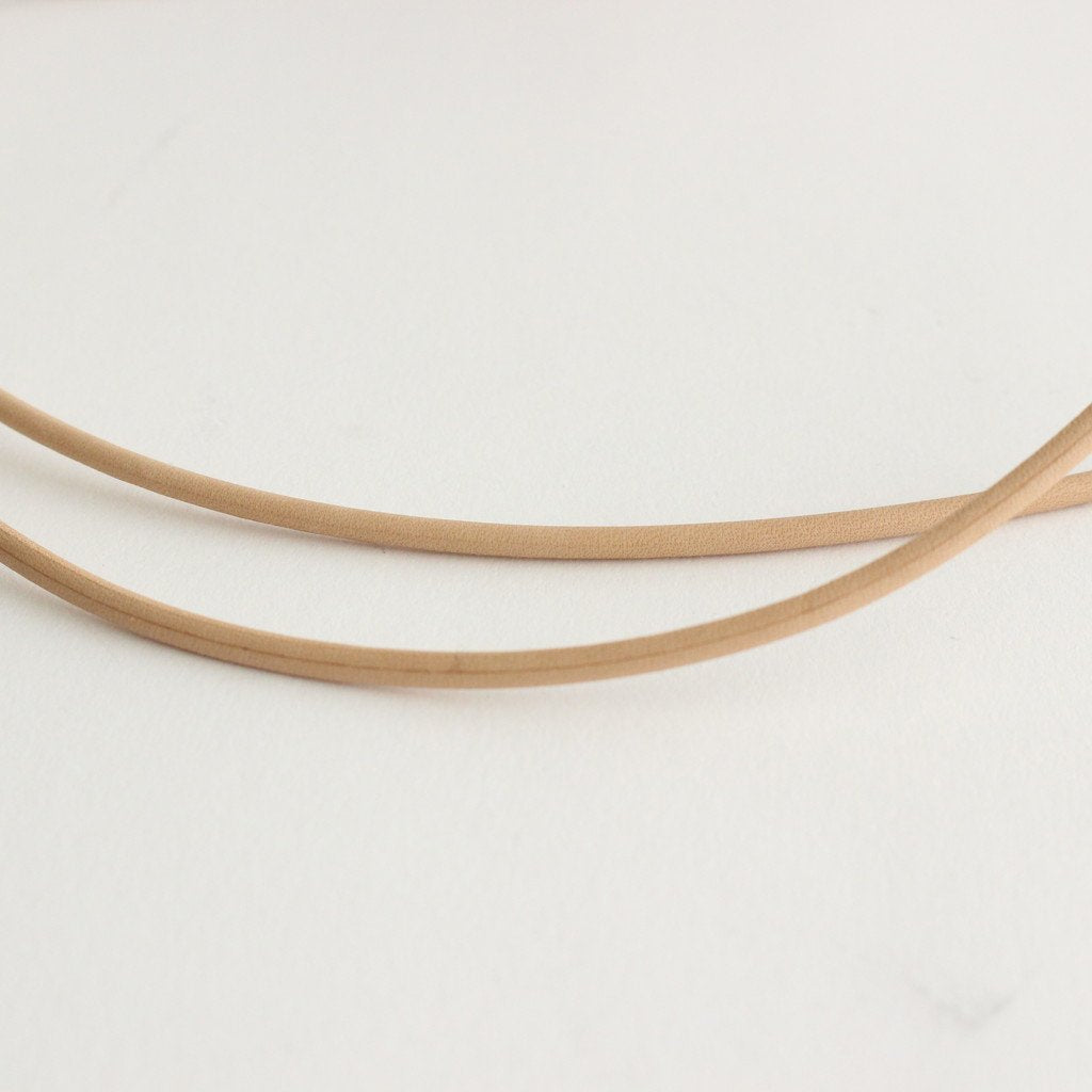 使えば使う程味が出て深みが増すカウレザーを使用。革にパンチング加工を施し、その穴を利用してパーツ同士を革紐で編み込むことによって成形されています。1点1点手作業で製作されているため、生産工程の温度感を感じることのできる仕上がりです。