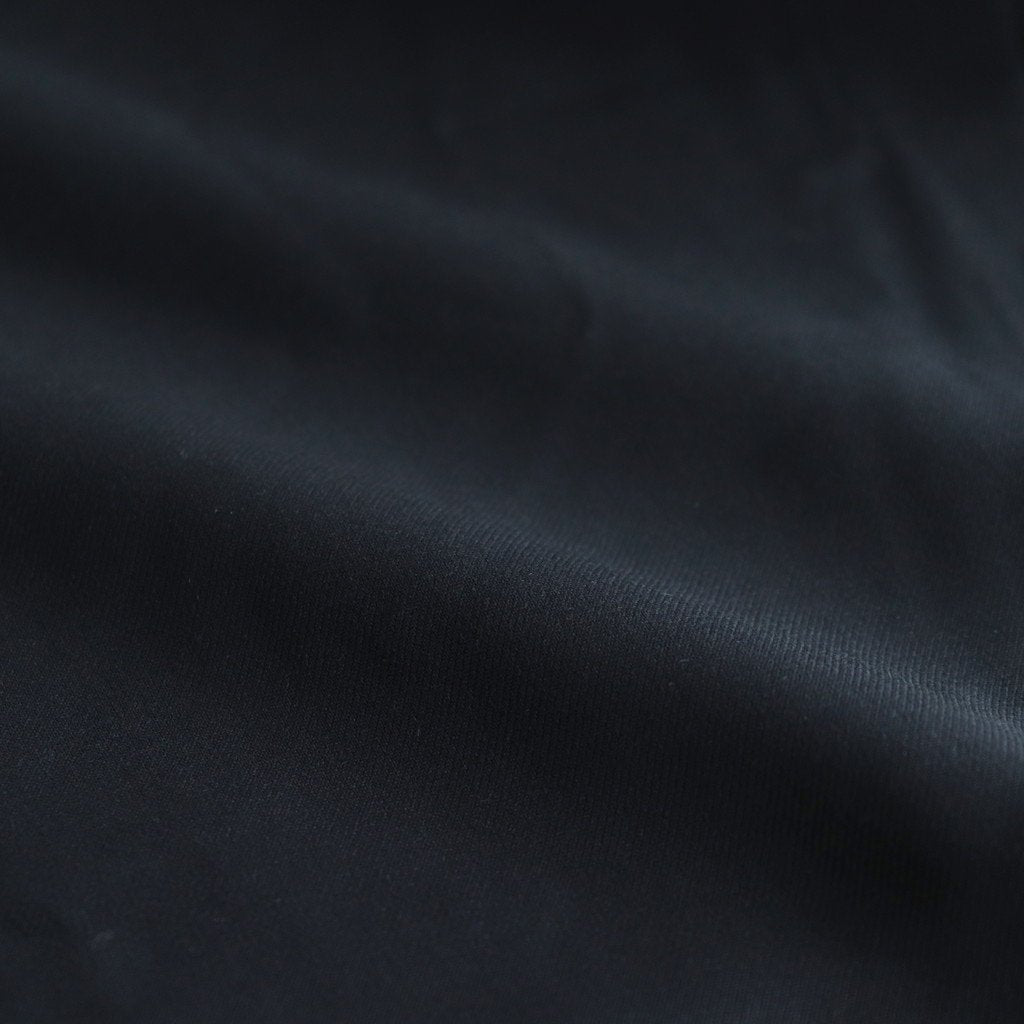 上品な表情をみせるスーツ地の様な風合いが特徴の生地を使用。ポリエステルをベースに柔らかくテロっととした質感が心地の良い風合いです。表面も滑らかでさらさらとした肌触り。弱ストレッチ性もあり、とても着心地の良い仕上がりです。