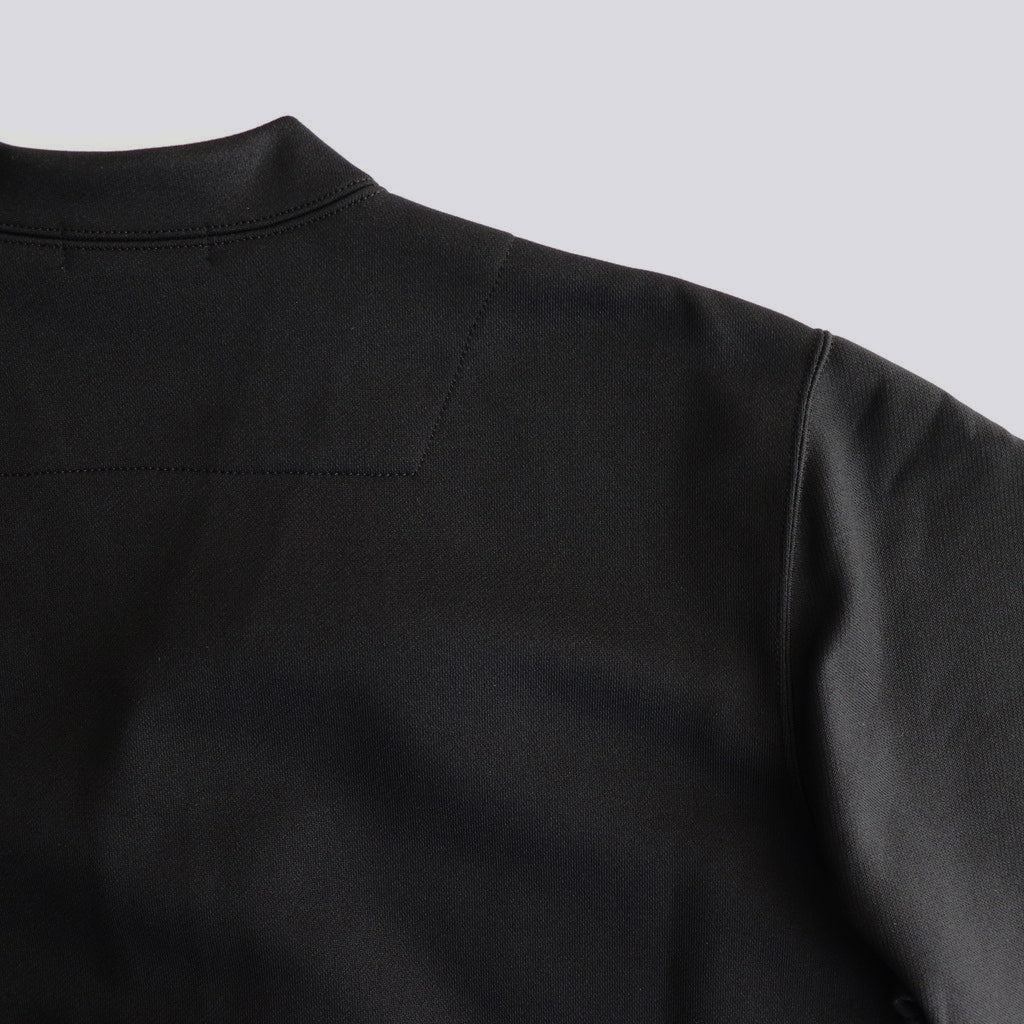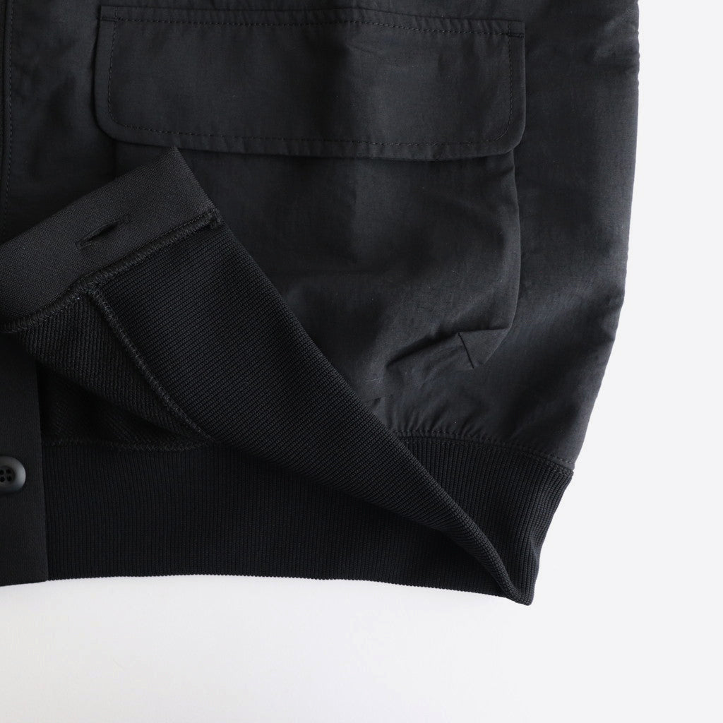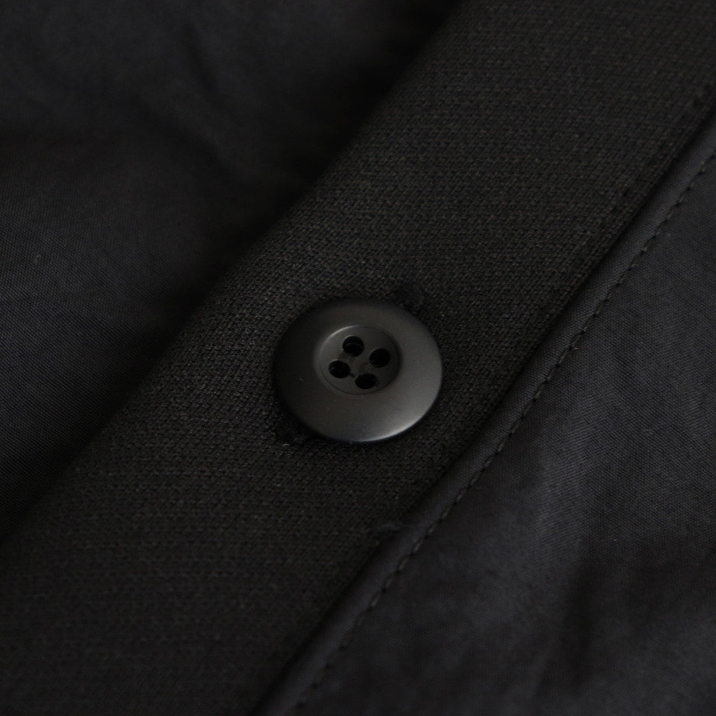 軽く耐久性も高いポリエステル素材をベースに使用し、各所をナイロン生地に切り替えることで見え方に奥行を持たせた一着。