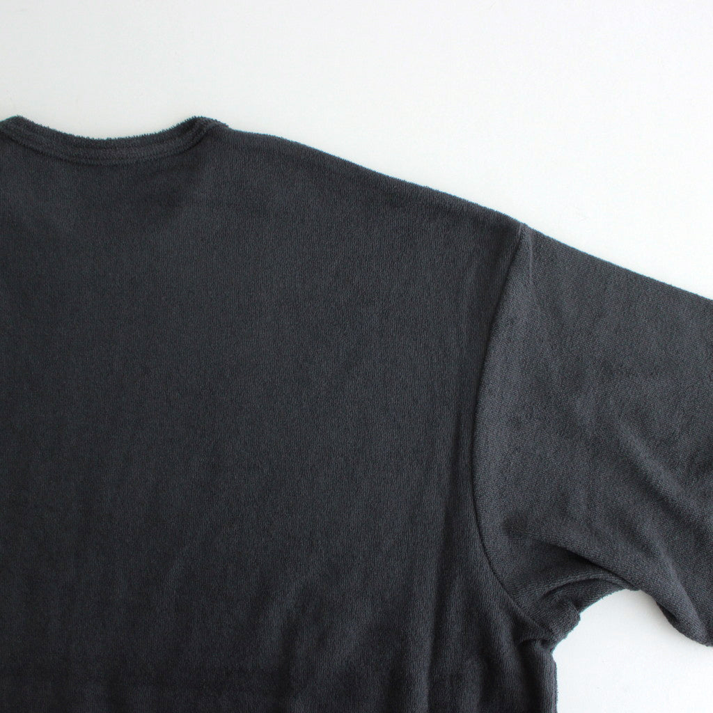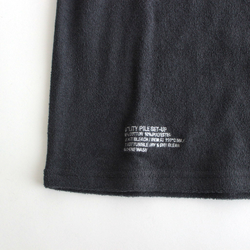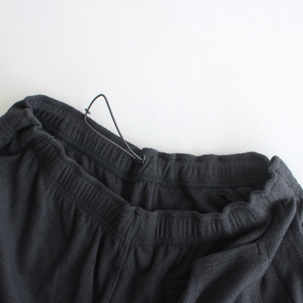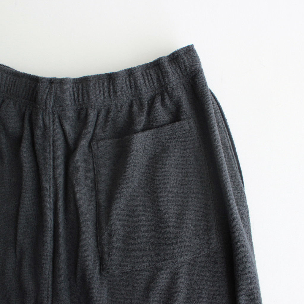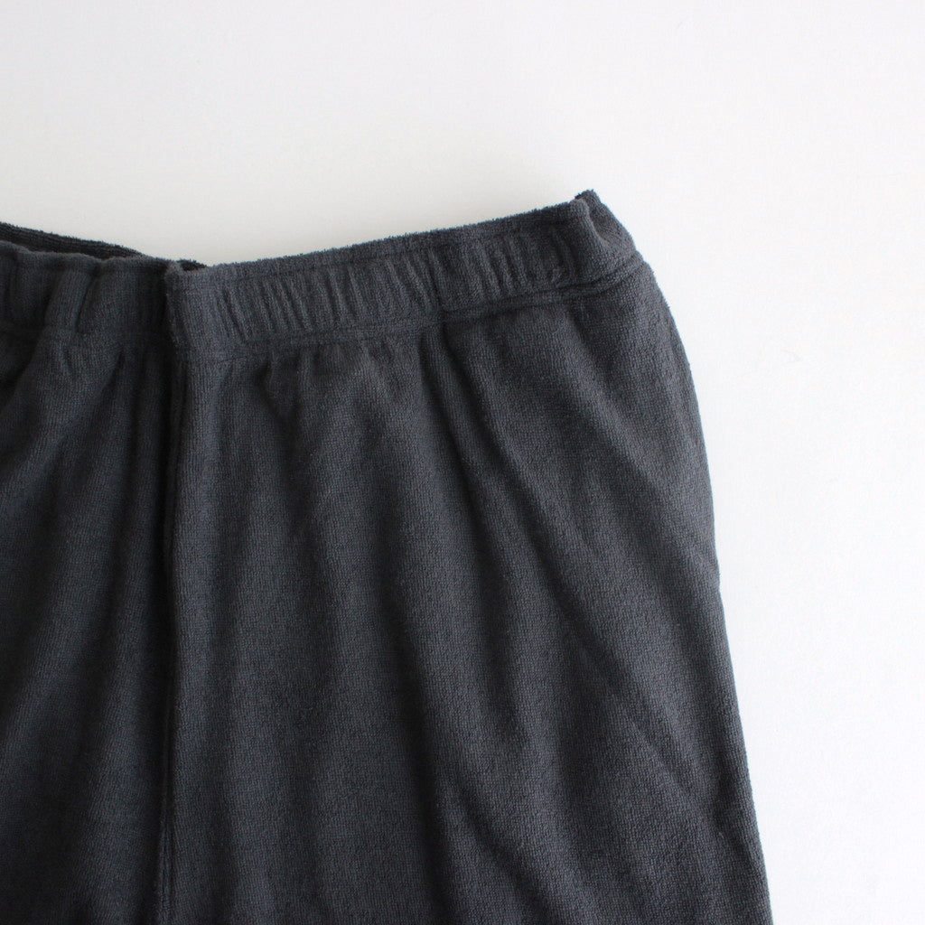 柔らかな肌触りでリラックス感溢れるパイル地を使用したReFresh!Serviceの半袖とショーツのセットアップ。採用したパイル地は吸水性に優れており、サウナから上がった後にそのまま着用可能。速乾性も兼ね備えており快適な着用感を維持します。