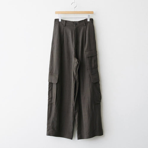 양측에 카고 포켓을 적용한 이지 트라우저즈. 양 옆선을 살짝 안쪽으로 비틀어 전체 실루엣에 뉘앙스를 더했습니다. 이지 사양으로 다양한 허리 위치에서 핏이 잘 맞도록 착용 가능합니다.