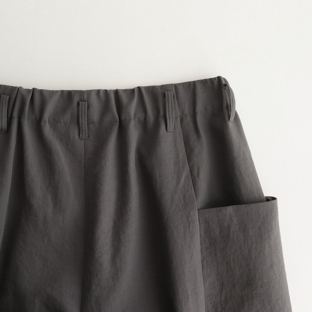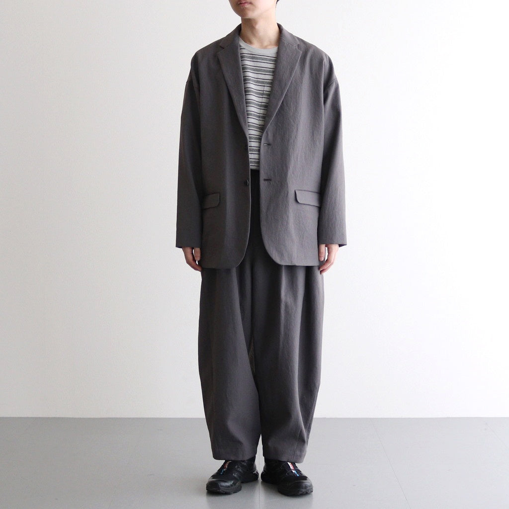 속이 빈 폴리에스터 원사를 사용한 가벼운 능직 원단을 사용. 가볍고 내구성이 좋은 폴리에스터 원사를 고밀도로 직조하여 바삭바삭한 질감으로 완성한 소재. 드라이 터치로 적당한 주름감이 있고 깊이감이 느껴지는 소재입니다.흡습속건과 자외선 차단, 약간의 신축성이 있는 것도 장점입니다.