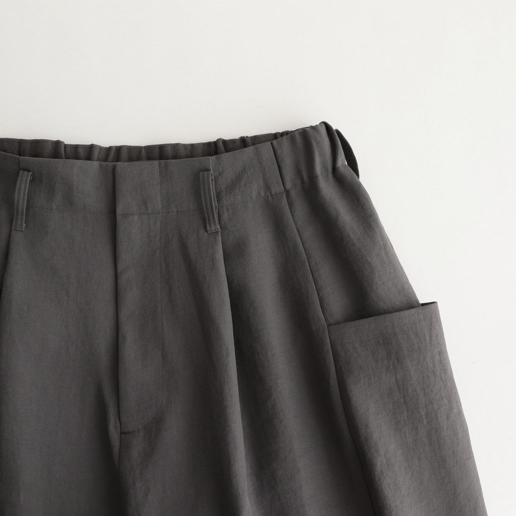 가랑이 위쪽을 깊게 잡아 여유로운 허벅지 폭에서 완만하게 테이퍼드 처리한 와이드 테이퍼드 실루엣. 브랜드 특유의 편안한 느낌을 주는 제품입니다. 허리는 벨트 고리가 달린 이지 사양입니다. 앞면은 지퍼 플라이로 마감되어 있습니다. 양 사이드에 포켓이 디자인되어 있으며, 밑단까지 원단을 덧댄 듯한 독특한 디자인입니다.