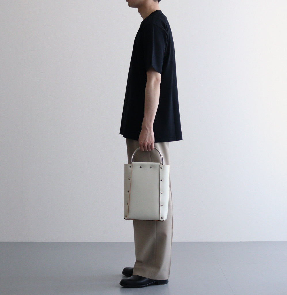 肩幅や身幅をたっぷりと広くとり、着丈をやや短めに設定したボックスシルエットで製作。大きめのシルエットで肌離れが良く、肌と生地の間に風が通りやすくなっています。首はクルーネック仕様。