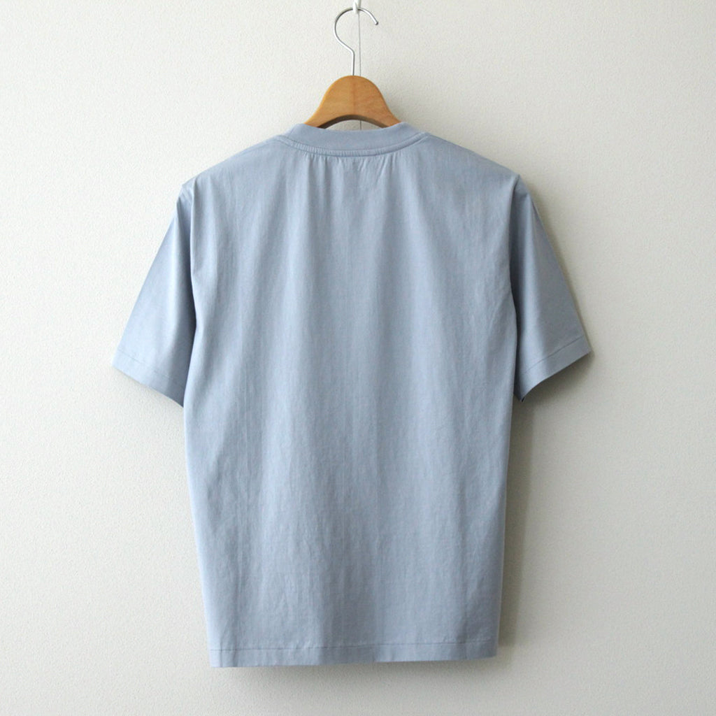 ほどよくゆとりのあるフィット感ながら野暮ったくならないようコンパクトなサイジングで仕立てられたベーシックなカットソー。襟はリブ編みにすることで強度を向上。袖、裾にはリブを設けず主張の少ないシンプルな仕立てに。