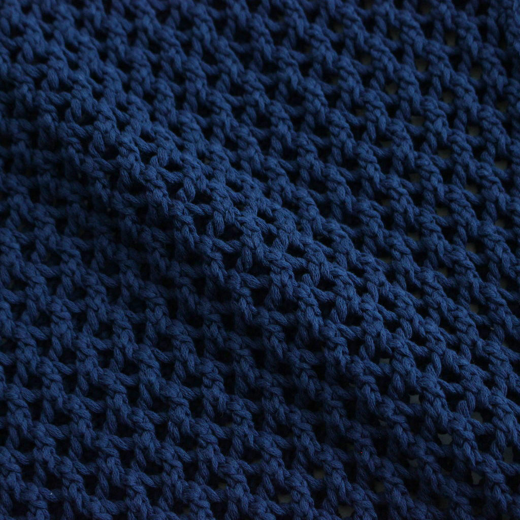一般的な糸の製法である撚りではなく、空気の力で繊維を絡めて圧縮した特殊な方法で紡績した糸を使用しています。この糸を無撚糸の芯糸に絡ませ、編み上げることによって完成したリリヤーンニットです。手横編み機でゆっくりとメッシュ状に編みたてた独特な編み柄が特徴的。