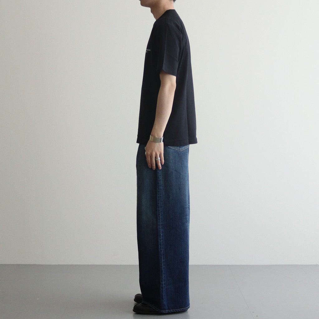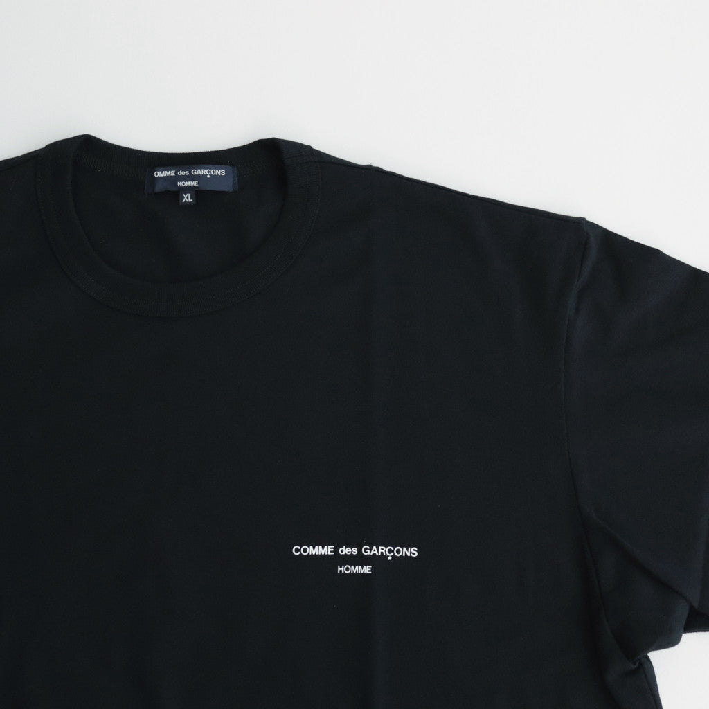肩周りや身幅に程良くゆとりを持たせた上品な印象のレギュラーシルエット。ネックラインを同素材のリブでバインダー処理を施すことで耐久性を高めています。左胸COMME des GARCONS HOMMEの小さなプリント入り。