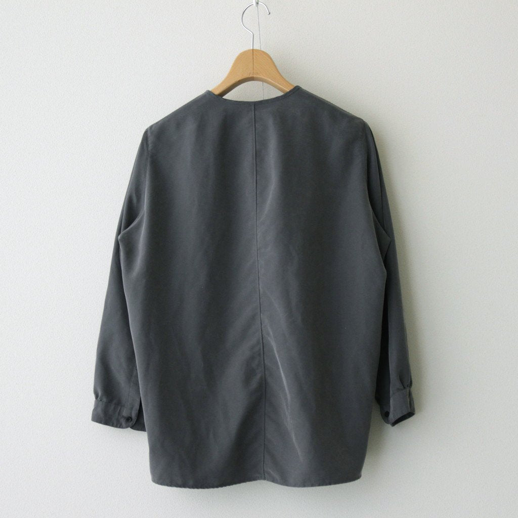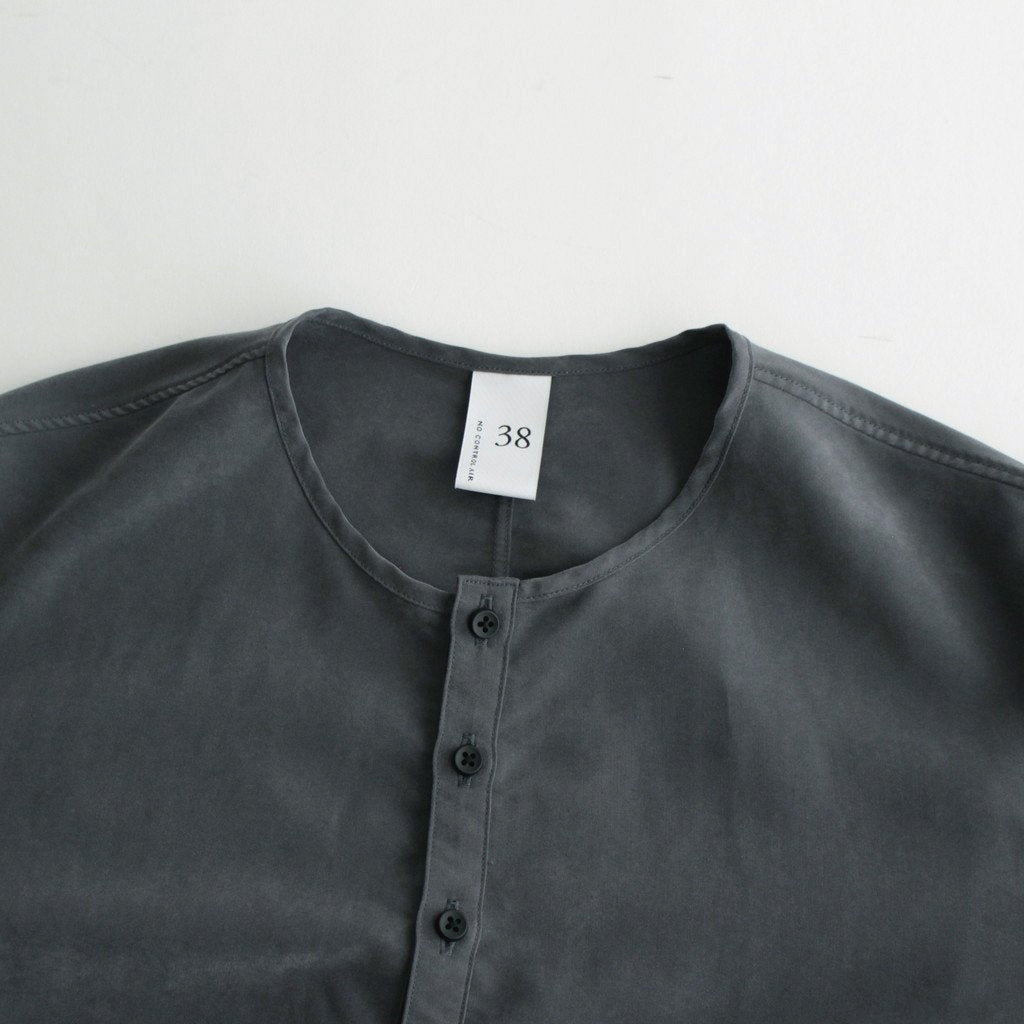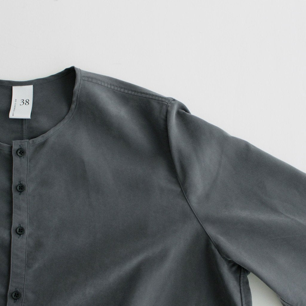 NNCSH | フィブリルレーヨン&ポリエステル・シャツポプリン ノーカラーセミワイドシャツ #90 SLATE GREY [TG_NC0603SF]