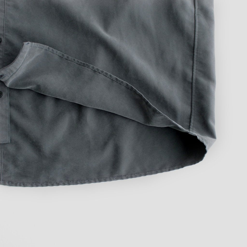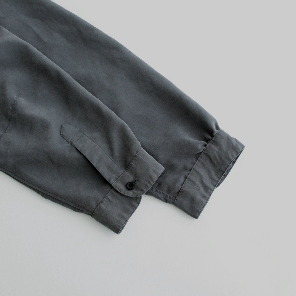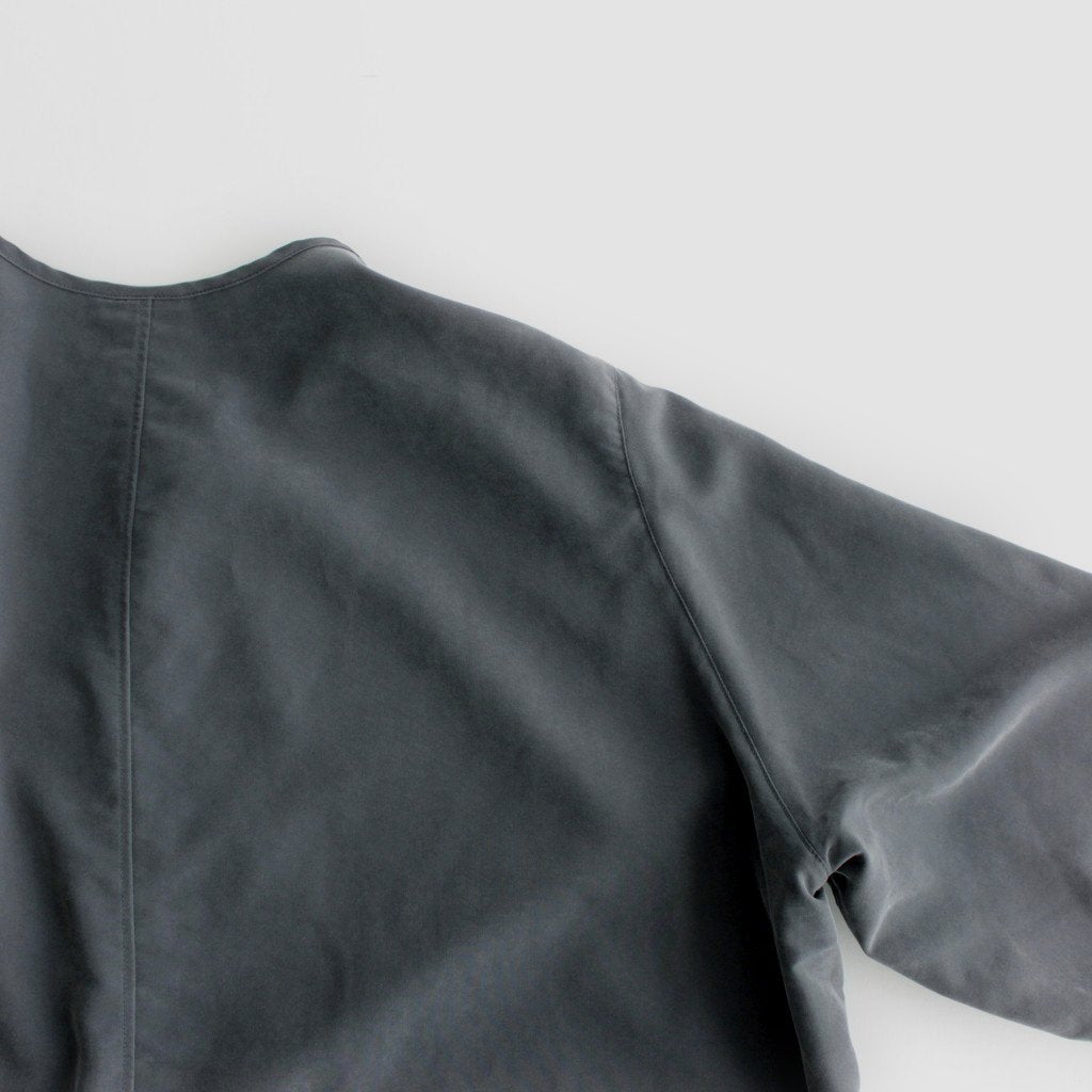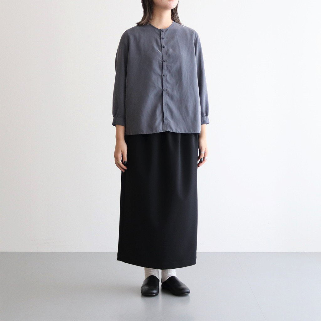 NNCSH | フィブリルレーヨン&ポリエステル・シャツポプリン ノーカラーセミワイドシャツ #90 SLATE GREY [TG_NC0603SF]