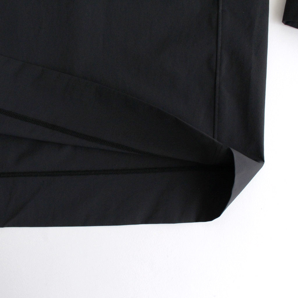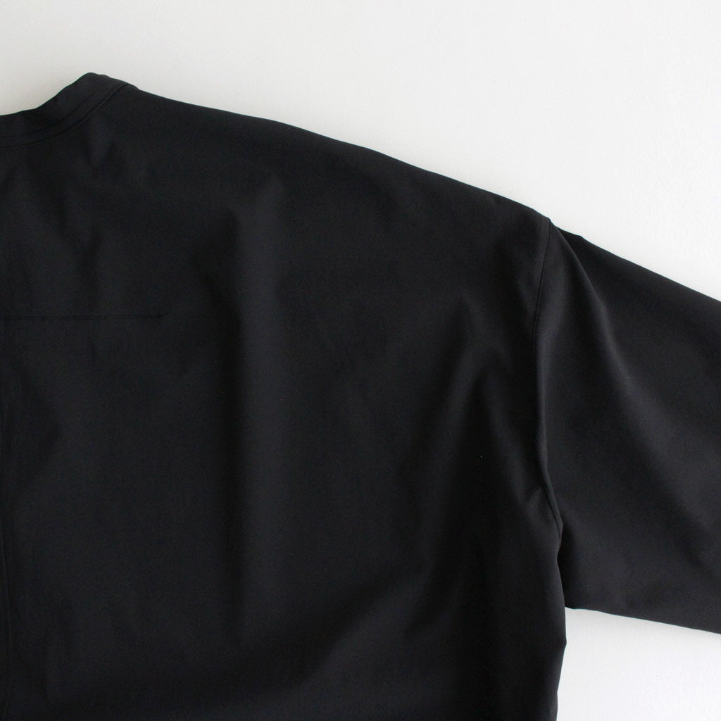 ストレッチ性のあるポリエステル糸を使用した平織りタイプライター生地です。光沢が少なく透けにくい糸を高密で織っているため、淡色でも透けを気にせずご着用いただける生地となります。ストレッチもよく効いているため、着心地も快適。速乾機能もありとても扱いやすい生地です。