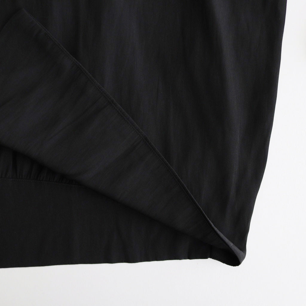 アルカリ加工を程すことでマイクロファイバー化する(割繊)ポリエステル糸を使用したチャイニーズクレープ生地です。織った後タンブラー加工で仕上げているためナチュラルな風合いがあり、落ち感も美しい生地です。薄い生地ですが透け感もなく、色も深く染まるため深みがあり、皺が入ってもそれが風合いに見える生地です。