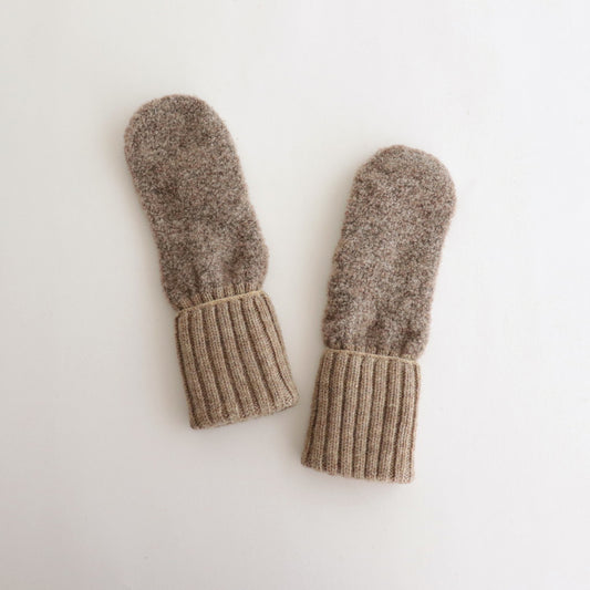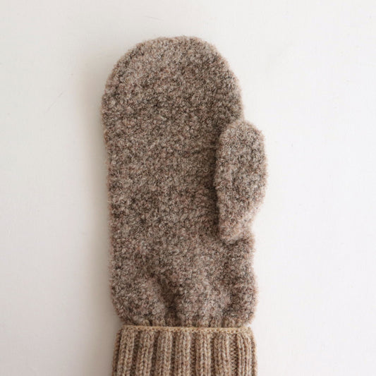 ウールとアルパカ素材をミックスして編み上げられたミトン型の手袋。贅沢な素材使いで保温性はもちろんこと、程よい肉感と柔らかい肌触りをお楽しみいただけます。