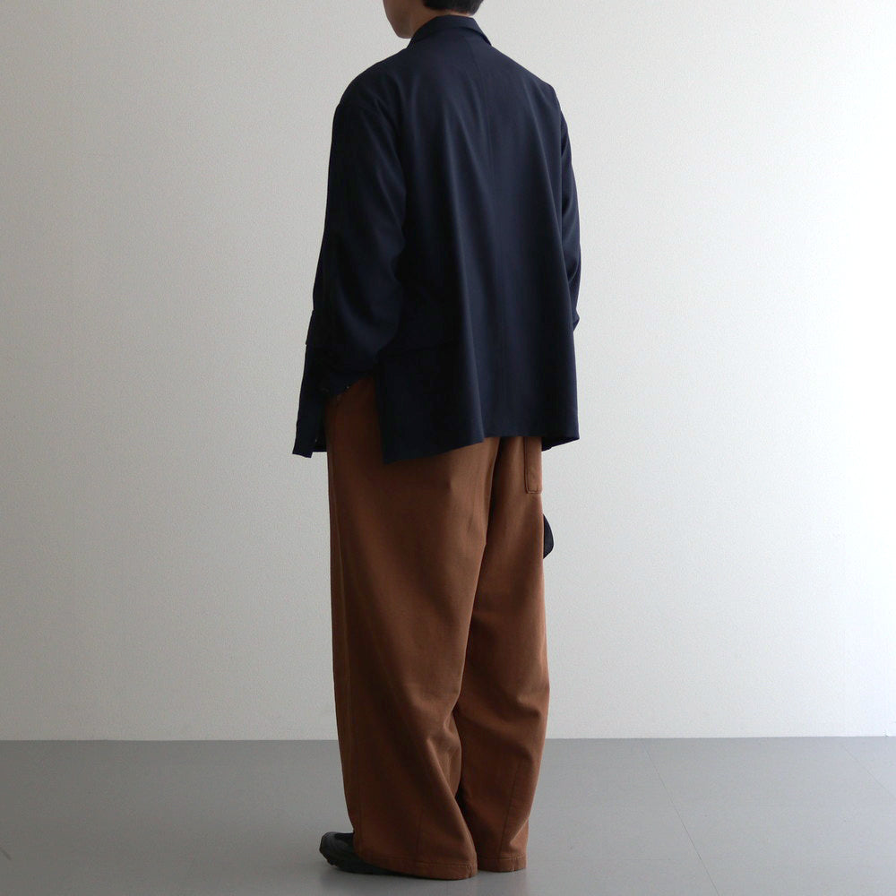 フロントだけではなく、バックにも備えたフラップポケットが特徴的です。ミリタリーのディテールでもある前振りの袖がデザインアクセント、アクションプリーツを加え、袖口も調整出来るようにデザイン。釣りの際の可動域を広げ、袖口のもたつきも解消したデザインです。