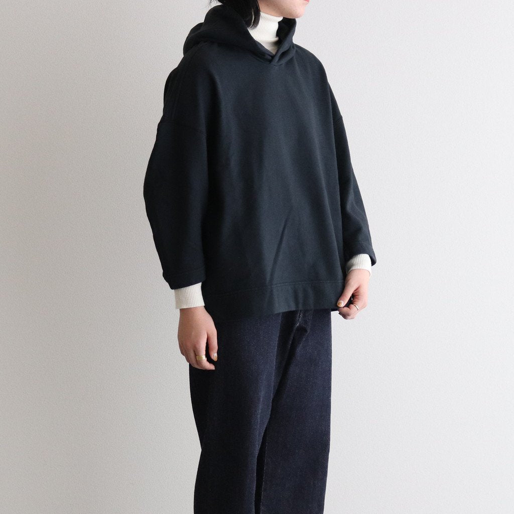 「20/10 サルフィー裏毛」テキスタイルを使ったプルオーバータイプのパーカー。使用している生地はタオルのようにパイル状に編まれた、20/10の定番的な肉厚の裏毛素材。着古したような風合いで、重くしっかりとした着心地が特徴です。製品染めで仕上げ、タンブラー乾燥を施す事で程良く力の抜けたカジュアルな雰囲気がありながら、どこか落ち着いた大人な印象に。