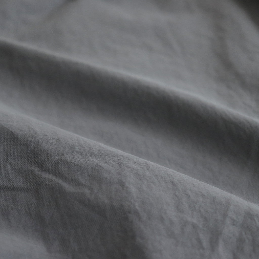 緯糸にやや太めの糸を使用したタッサー織のナイロン生地。わずかに横向きの畝があり、起毛加工が施されているのでナイロンでありながらソフトなタッチの風合いです。ふくらみがあり、軽量でありながらボリュームの出る生地です。