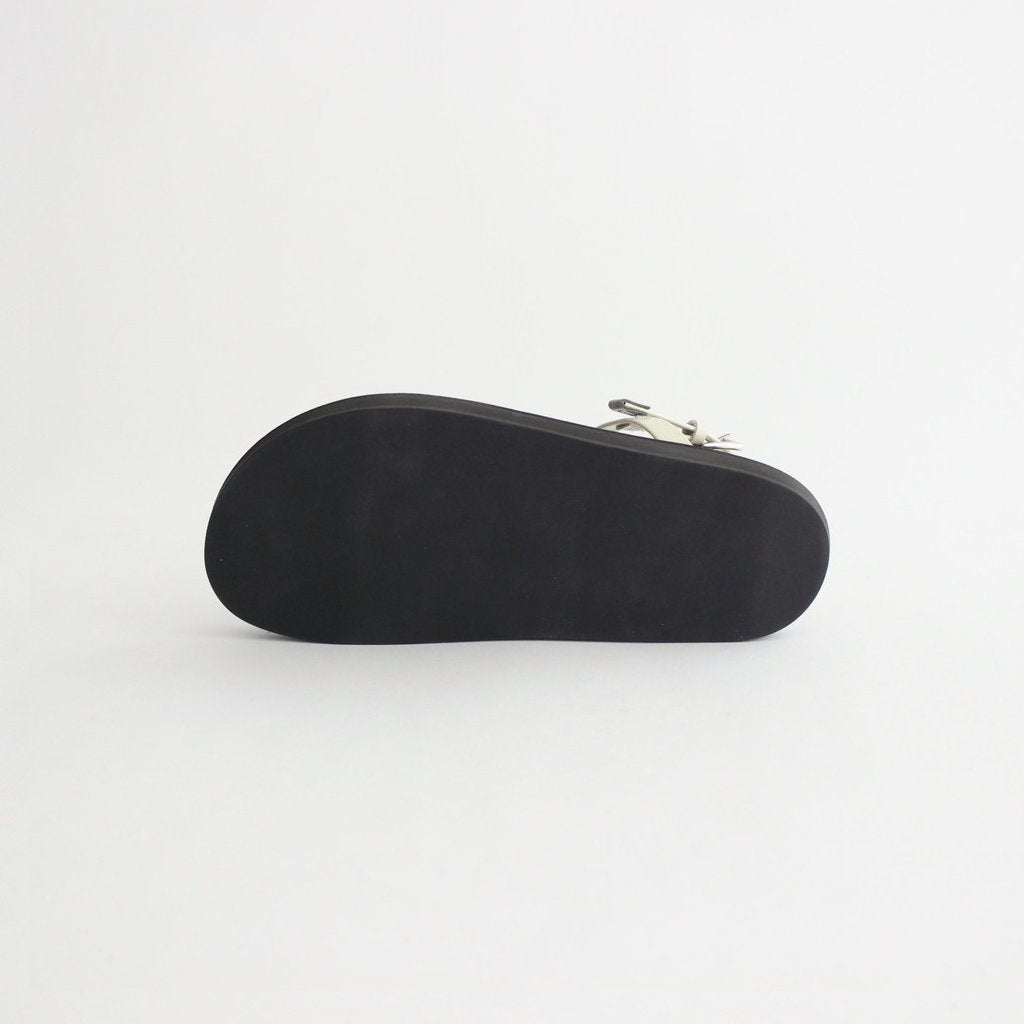 plywood(プライウッド)製のオリジナルモチーフを取り付けたモダンな佇まいのサンダル。