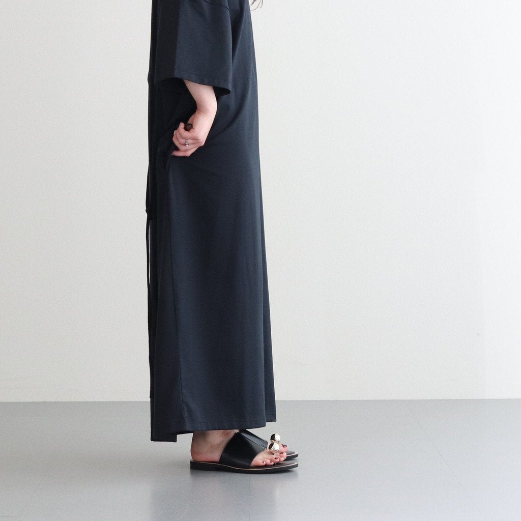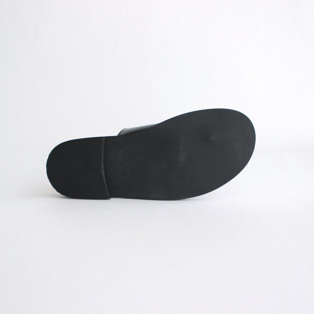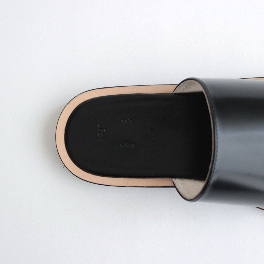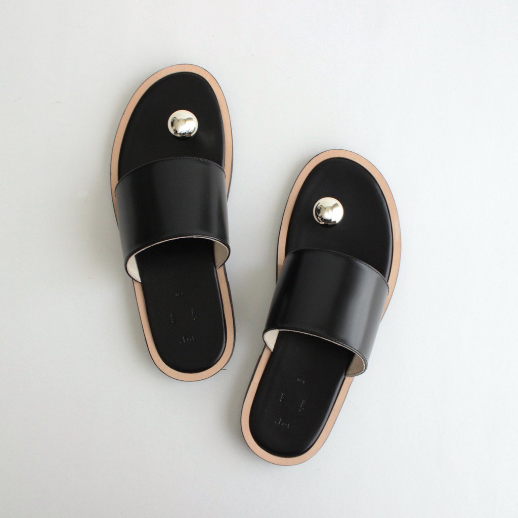 アッパーには上質なカウレザーを贅沢に使用。厚みのあるしっかりとした質感が重厚な雰囲気を漂わせ、機能としても強度と耐久性にも優れています。アウトソールにソフトなラバー素材を使用しより履きやすさを追求。ライニングにはピッグレザーを使用している為、肌当たりが良く、履き心地の良い仕上がりです。トングタイプのサンダルでモダンな佇まいでありながら、構造は、指股が痛くなりにくいよう甲でホールドさせて履いていただく設計。インソールに「_Fot」の型押し入り。