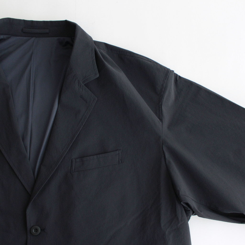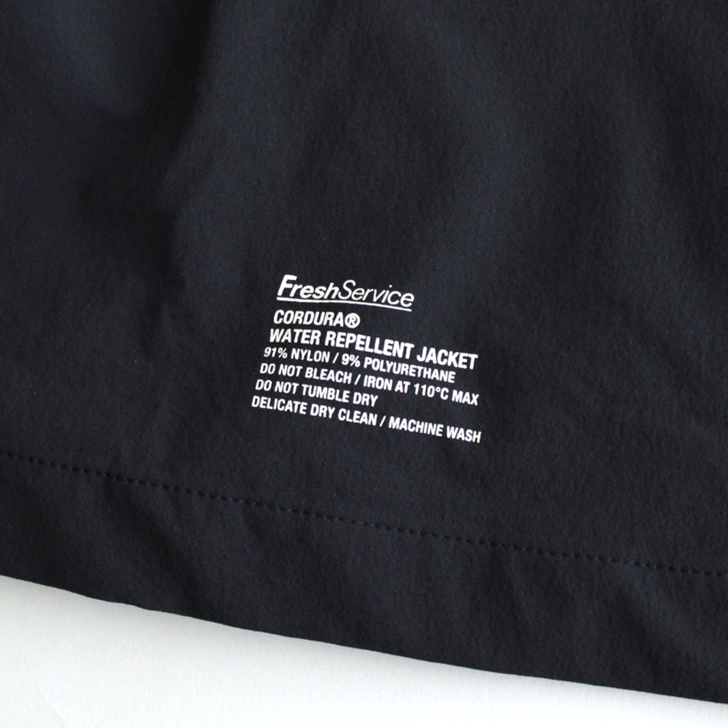 FreshServiceらしいボリュームのあるシルエットで製作されたテーラードジャケット。ラペルやポケットなどはベーシックでミニマルな仕様となっており、袖口はスナップボタンで絞り具合の調整が可能。右裾にケアタグを模したFreshServiceのネームプリント入り。