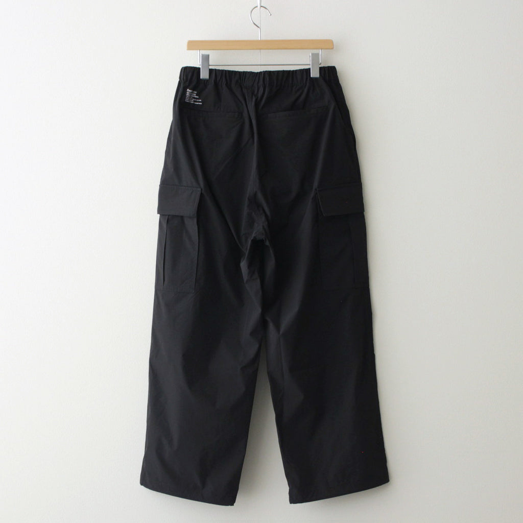 カーゴポケット付きのイージーパンツ。 生地の適度なハリコシによって適度に空気を含んだボリュームのあるシルエットが特徴です。ウエストだけでなく裾にもドローコードを設けてありシルエットを調整可能な仕様に。