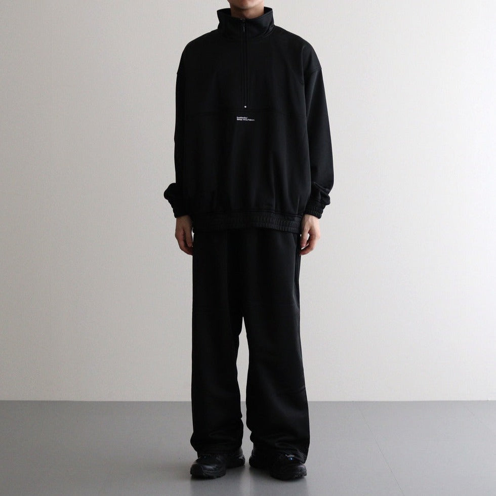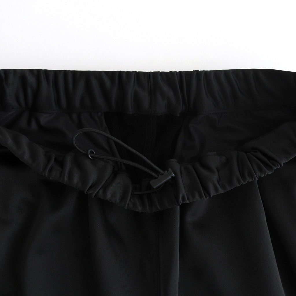 上品な光沢感のあるクラシックなジャージ素材のトラックパンツ。ポリエステルをベースとしつつ、パルプを原料としたサステナブルな素材であるトリアセテートをブレンドして使用。ジャージ素材ながら適度な吸湿性を保ち、さらっとした肌触りで春先から秋口まで幅広く着用可能な素材感です。全体にゆとりを持たせたリラックスシルエットのイージーパンツ。裾のドローコードで絞ることも可能。