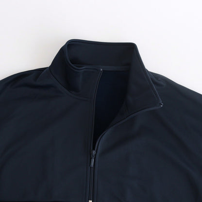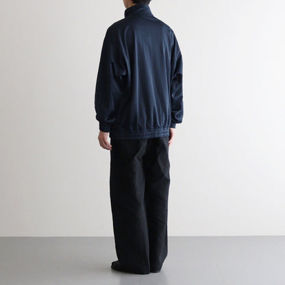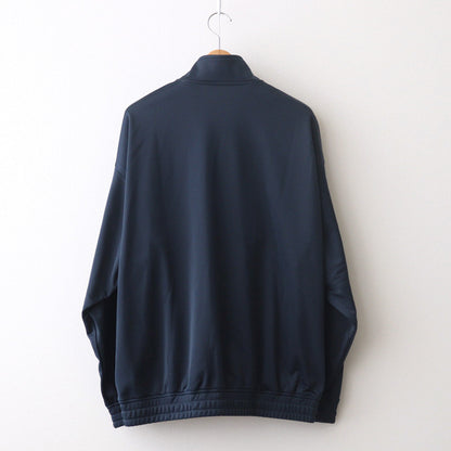 上品な光沢感のあるクラシックなジャージ素材のハーフジッププルオーバー。ポリエステルをベースとしつつ、パルプを原料としたサステナブルな素材であるトリアセテートをブレンドして使用。ジャージ素材ながら適度な吸湿性を保ち、さらっとした肌触りで春先から秋口まで幅広く着用可能な素材感です。ドロップショルダーでゆったりとしたシルエットがスタイルのアクセントに。