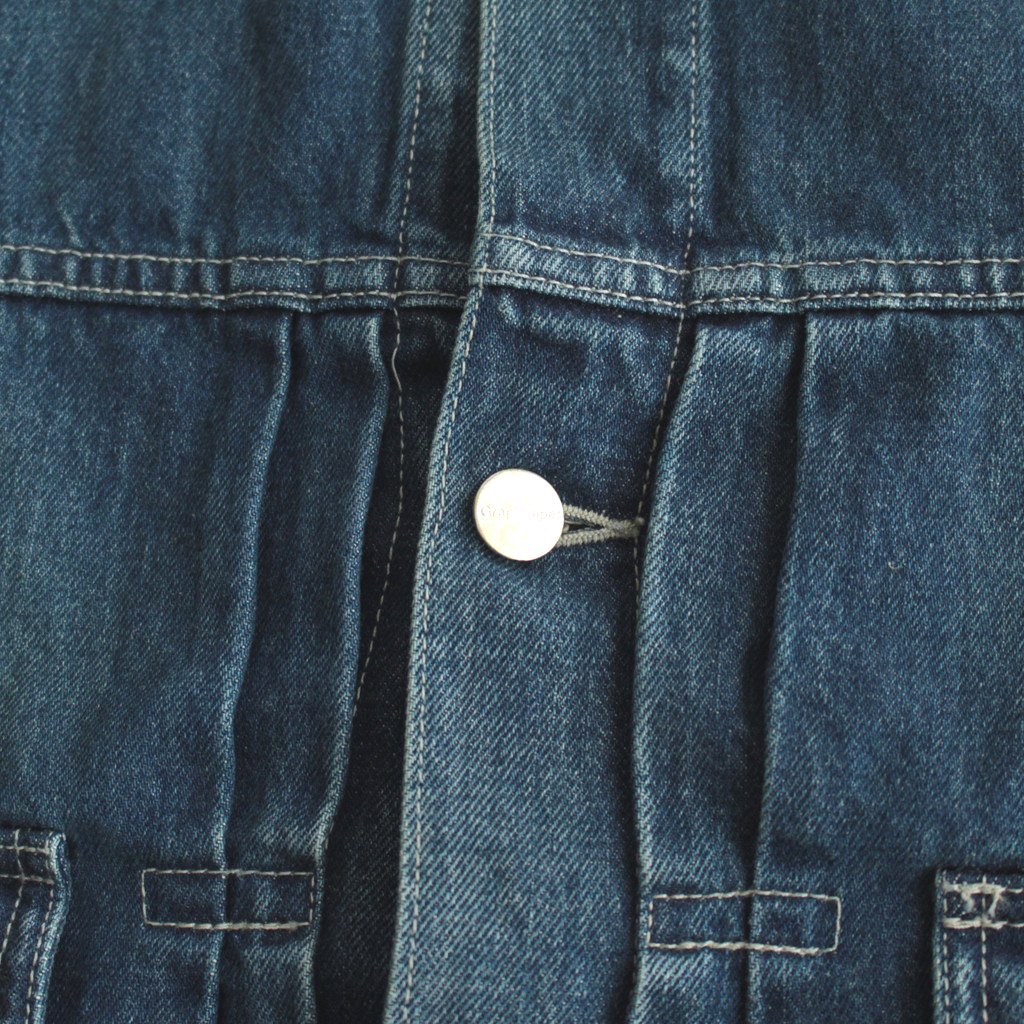 50年代に誕生した往年のデニムジャケットのディテールを継承しながらも立体的にボリュームのあるシルエットを構築。バックヨークの左右にタックを入れることで背面のシルエットをふわっとさせると共にコンフォートな着心地に仕上げています。ロゴの刻印入りのタックボタン、襟ぐりにクリーンなヌメ革のパッチ。バック左右の裾にアジャスターを設けている為、二段階でシルエットのアレンジが可能です。左胸ポケットにGraphpaperのピスネーム付き。