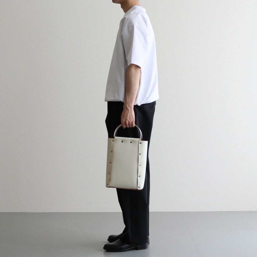 ハイゲージの編機で製作した光沢とハリ感のあるブランドオリジナルのジャージ素材。コットンをベースにナイロンをブレンドし、わずかにウレタンも入れることで強度を持たせながらもストレッチ性があり快適な着心地に。ほどよく厚みのある生地で裏地の設計はなく、年中着用可能な生地となります。