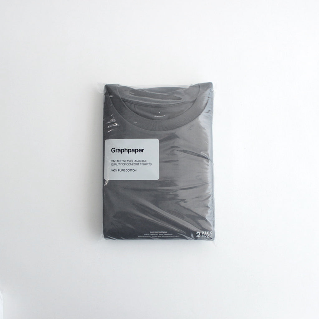 Graphpaperが定番展開しているパックTシャツ。脇に接ぎの無い丸胴編みにする事で身体に触れる縫製面が少なく、素肌にも快適な着心地を与えてくれます。肩周りと身幅に程良くゆとりを持たせたボックスシルエット。ネックラインはリブ編みに切り替えたクルーネック仕様、洗濯後も伸びないように耐久性を高めた作りです。オリジナルパッケージに入った2枚1セットでの販売です。