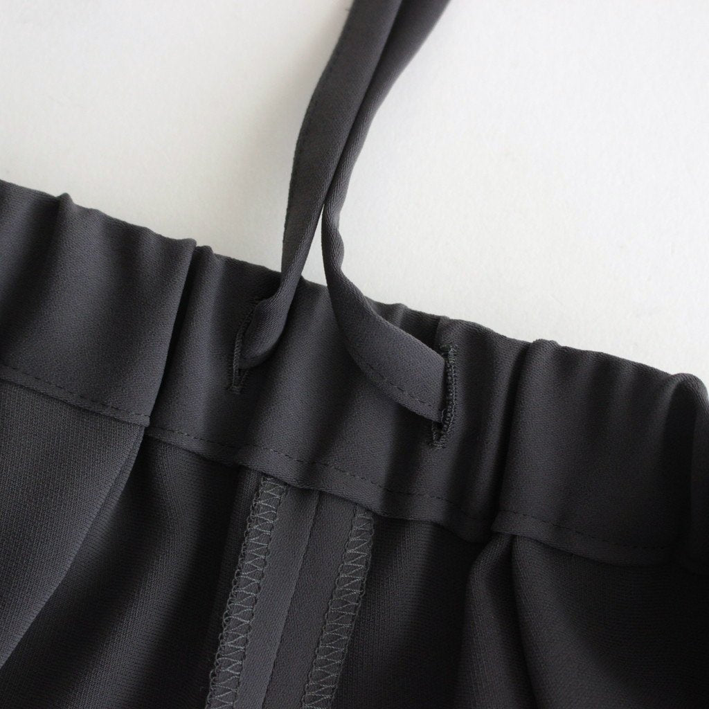 上品なドレープ感が美しいポリエステル製のダブルサテン生地を使用。履き心地も軽くさらさらとした心地の良い着用感がお楽しみいただけます。透け感はほとんどなく年中着用していただける生地感です。
