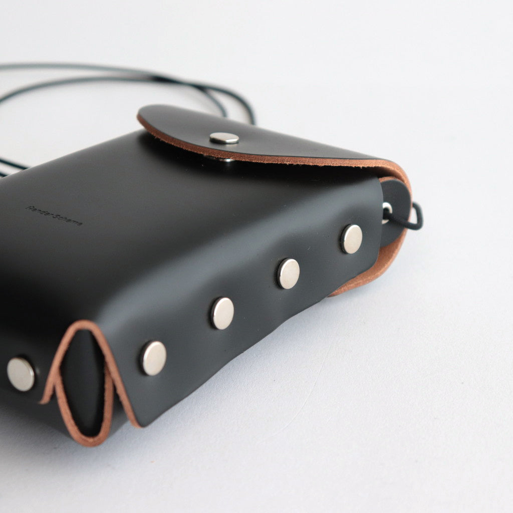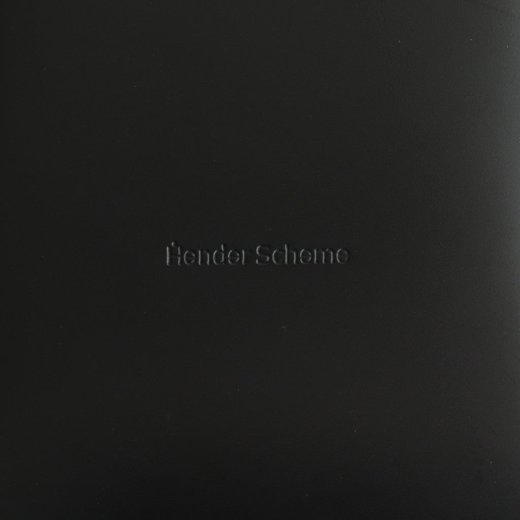 フラップ付きのポシェット型のデザイン。縦長のためスマホが綺麗に収まるサイズ。マチに余裕があるのでスマホとちょっとした荷物を入れることが可能。表面にHender Schemeの型押し入り。