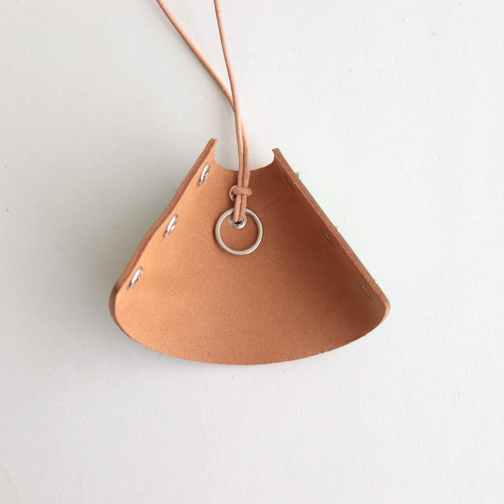 キーリングを中心にして円錐型にレザーを巻き付けたようなデザインのキーホルダー。キーホルダーとしての使用はもちろんのことお好きなものをつけたりアクセサリーとしての使用もおすすめです。