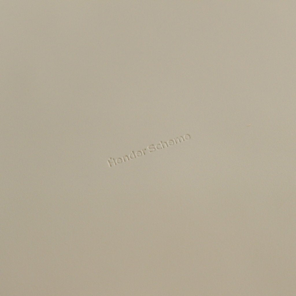 開口部がマグネットで開閉できるシンプルなデザインのハンドバッグ。サイドのパーツを上に向けて広がるような形にすることで台形になるように設計しています。A4サイズのクリアファイルもすっぽり収まるサイズ。ちょっとしたおでかけや普段使いにも丁度いい大きさです。表面にHender Schemeの型押し入り。