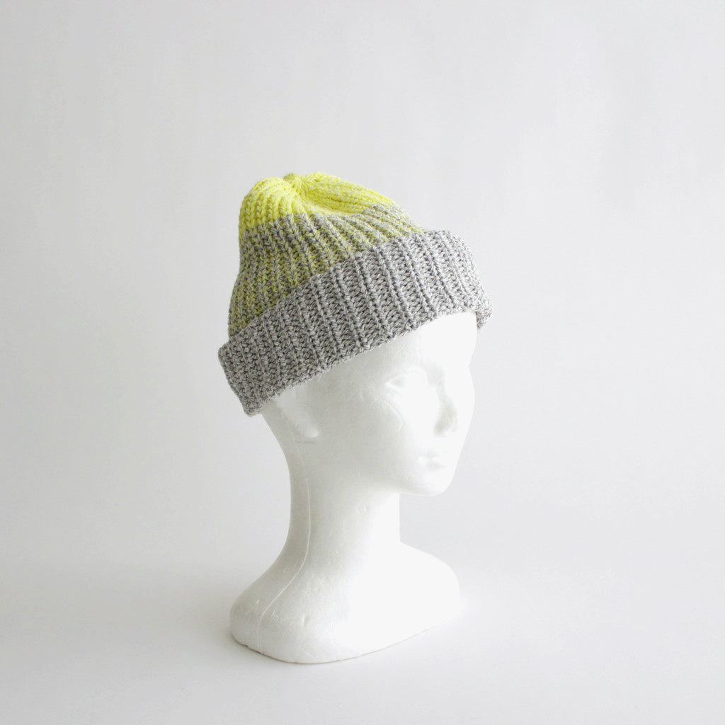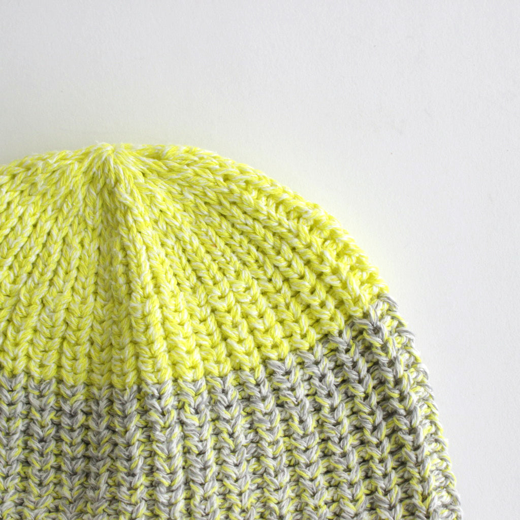 表情豊かなシルクと、特殊加工を施したコットンを、撚り合わせ編み立てしたニット帽。ローゲージで編み立てられており、ざっくりとした編地とボリュームのあるシルエットが特徴的。安定したかぶり心地です。