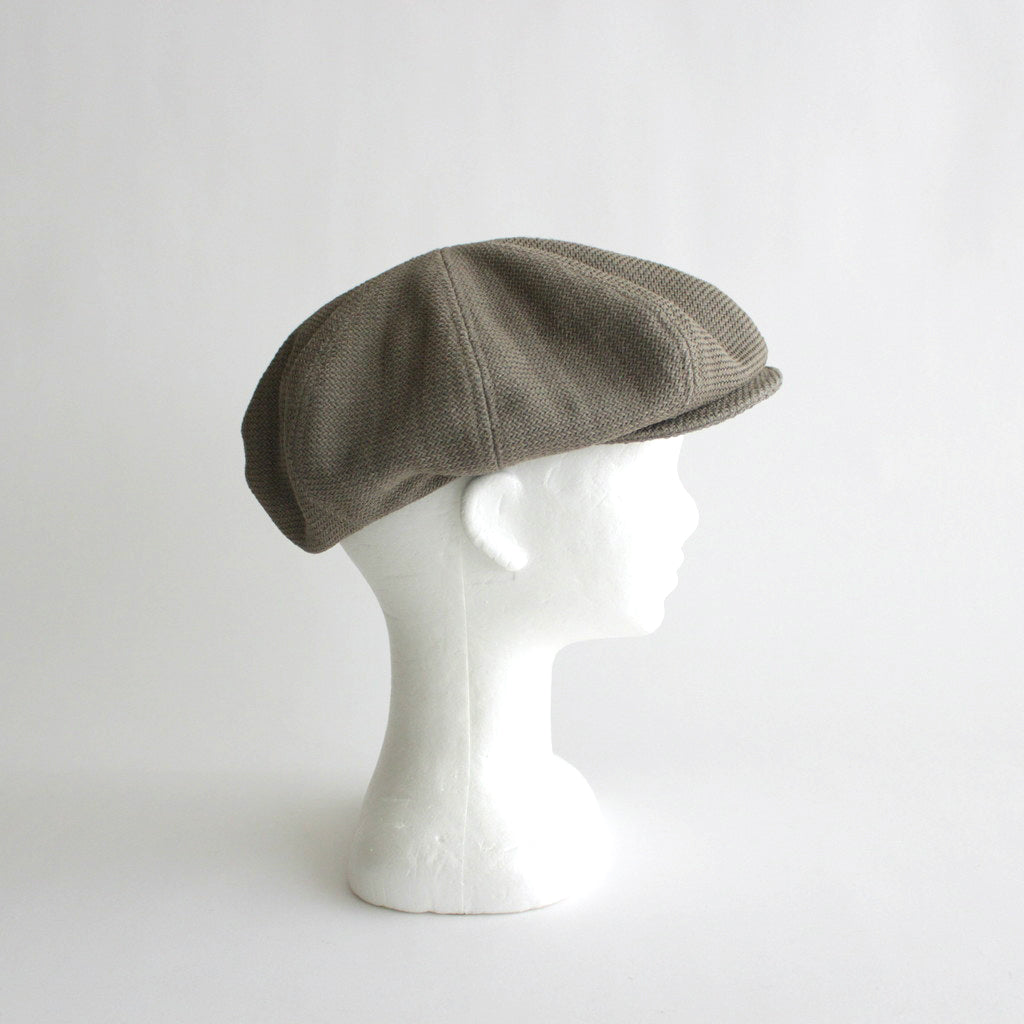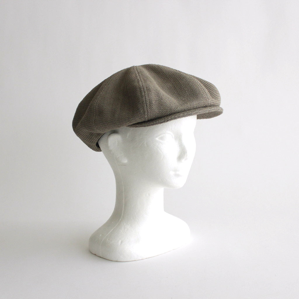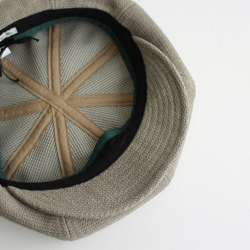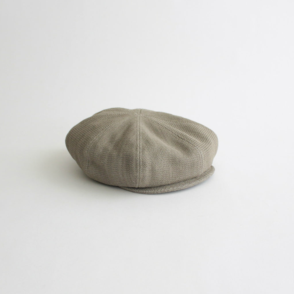シャリ感のあるドライな肌触りで清涼感のあるキャスケット。大ぶりなマチでボリュームを持たせ、綺麗な曲線のシルエットになるよう製作。程よい厚みを持ちながら通気性にも優れた素材。サイズ調整のリボン付き。