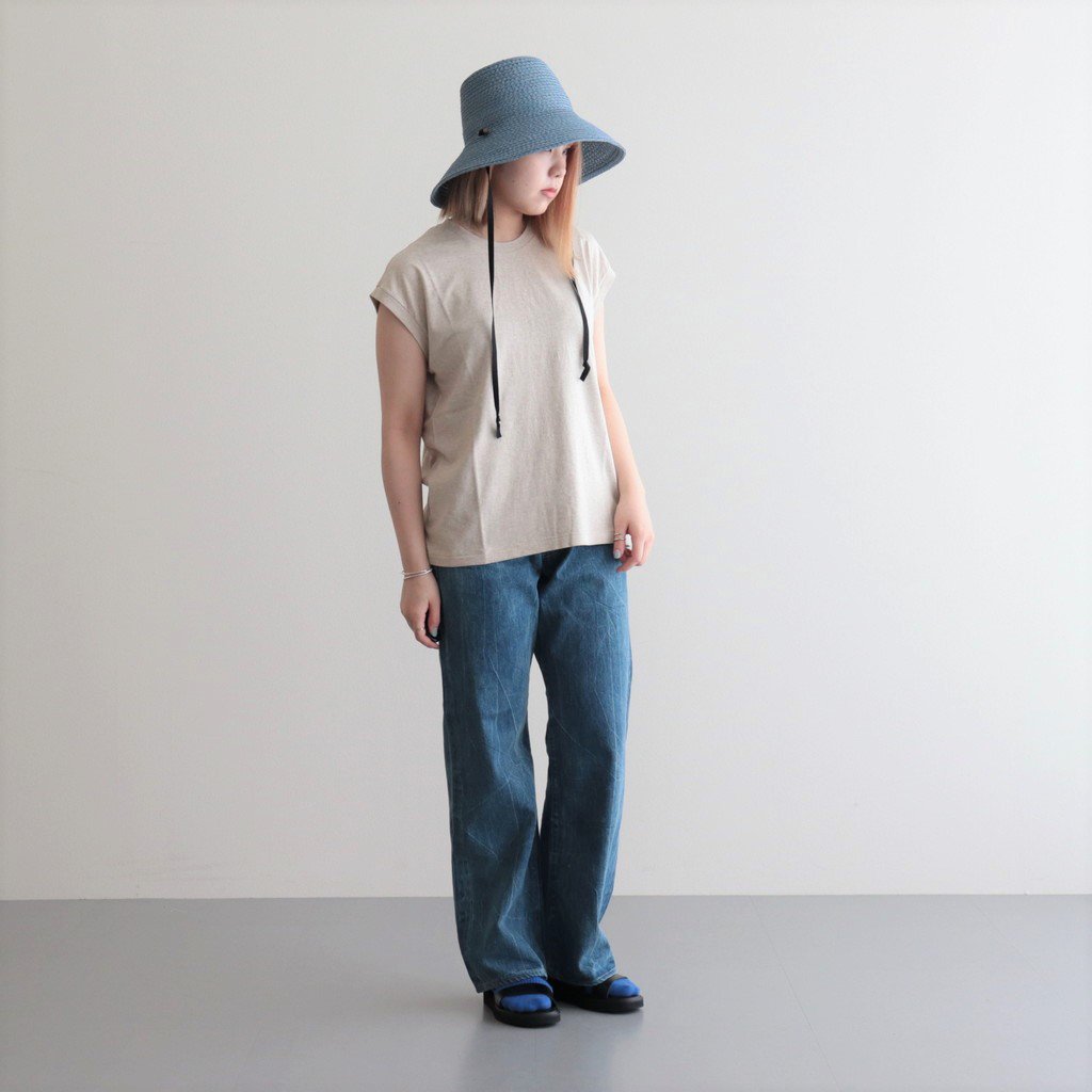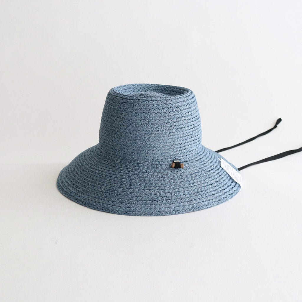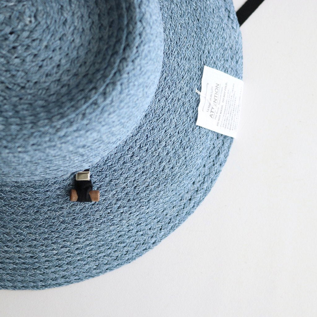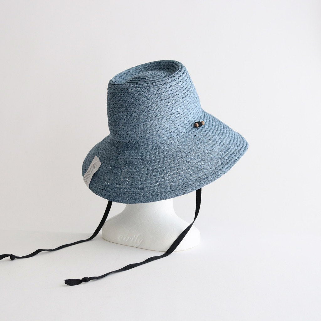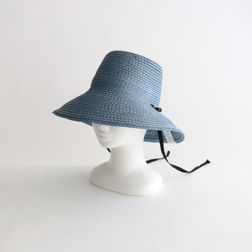 太陽の下でも安心なブリムの長さと、木漏れ日のような影を顔に落とす透け感が雰囲気の良いアイテムです。本来カジュアルな印象の強いストローハットですが、網目を繊細にし全体をハンサムなシルエットに仕上げることでよりクリーンな印象を強めた仕上がり。ブリム端にはワイヤーを入れ折り上げたり伸ばしたりとアレンジが可能。左右には取り外し可能なコットンコードを配し、ウッドパーツをアクセントにしています。