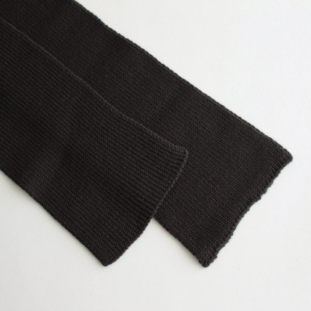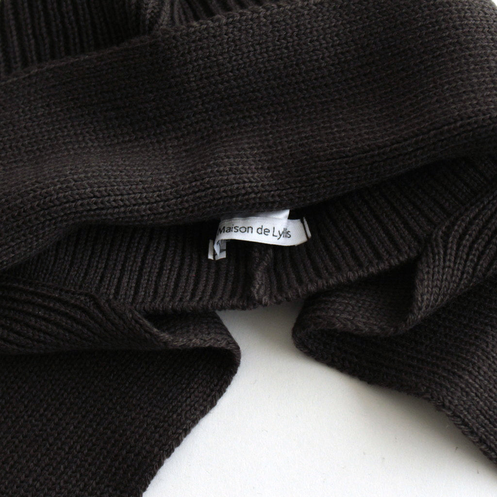 シンプルなリブ編みで仕上げたシングルニット。適度なボリュームがありながら軽量感のあるメリノウールとバルキーアクリルをブレンドした素材。嵩高性を持たせた丸いニットヤーンを使用しています。