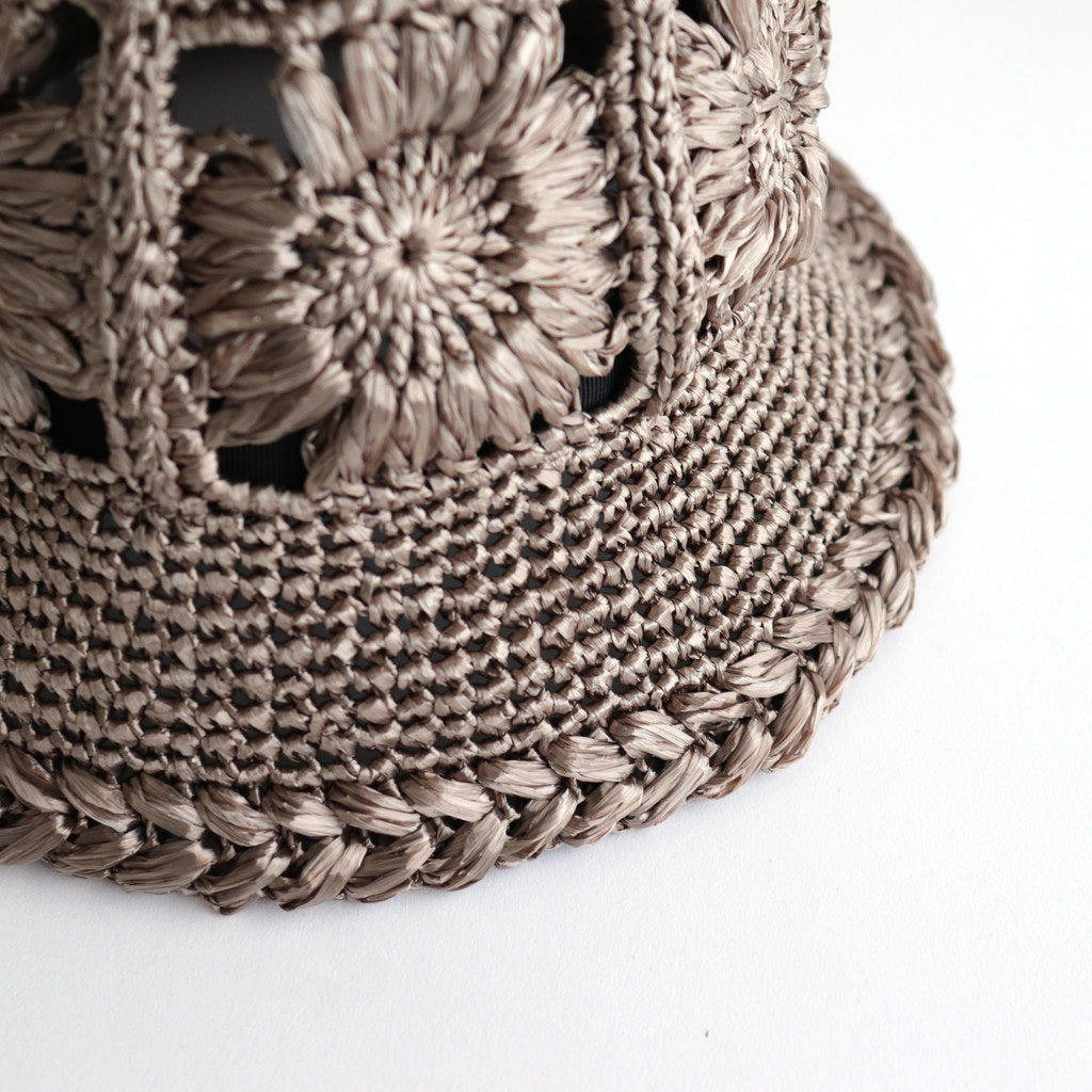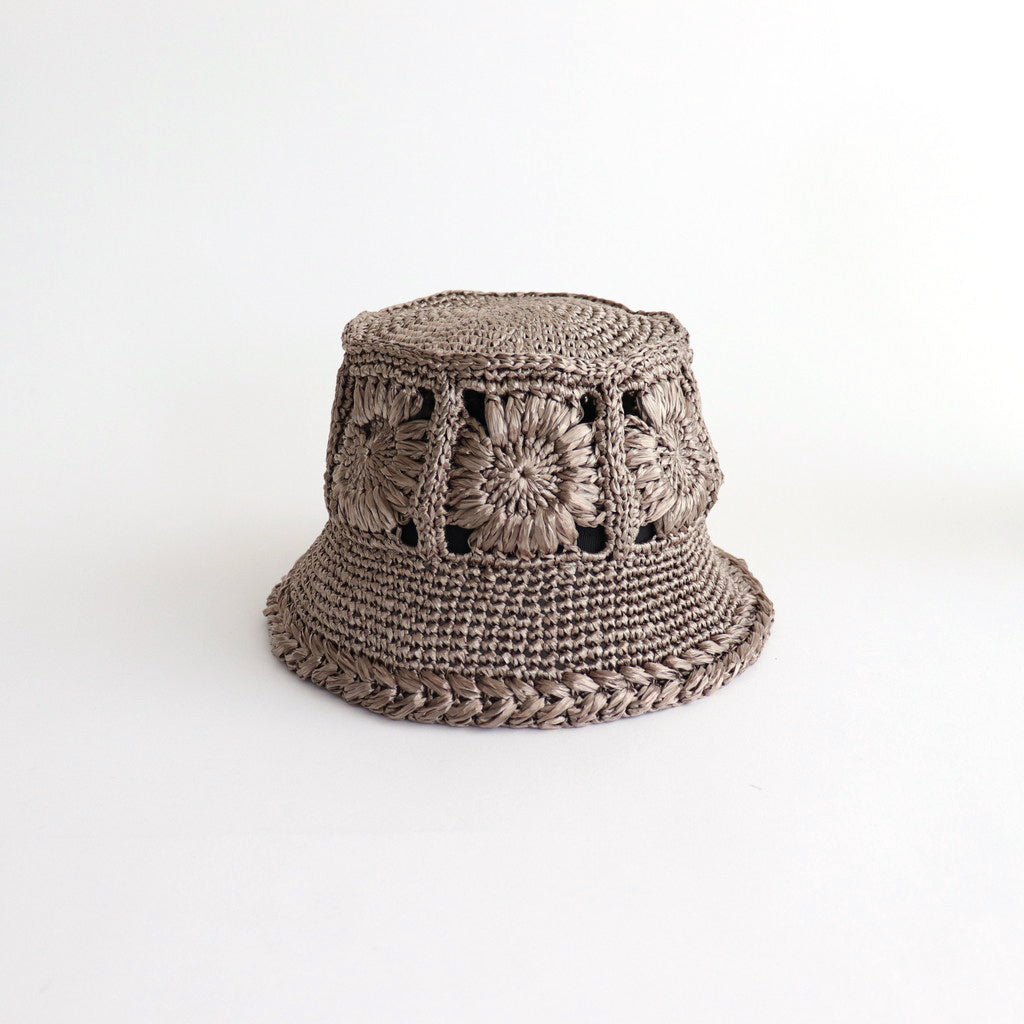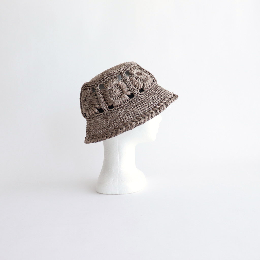 かぎ針で1つずつ手編みしたバケット型のハット。
