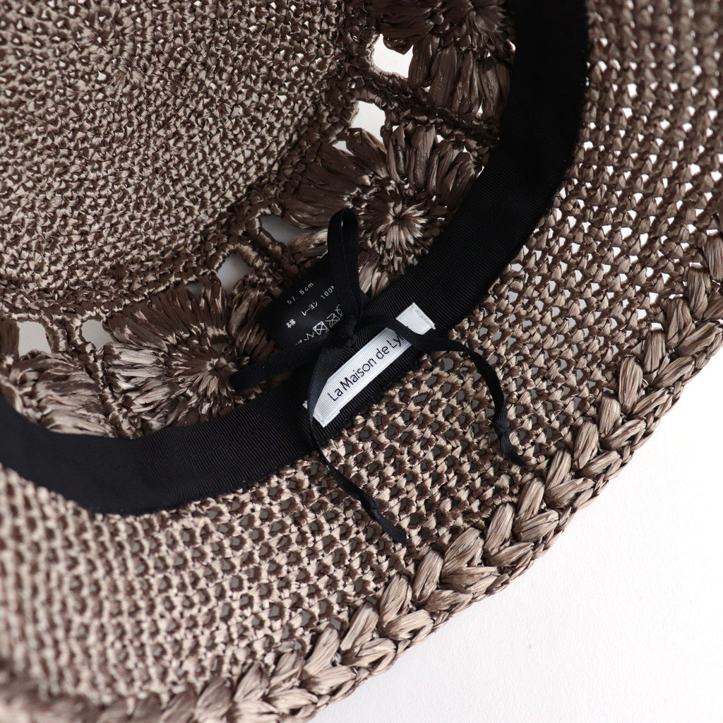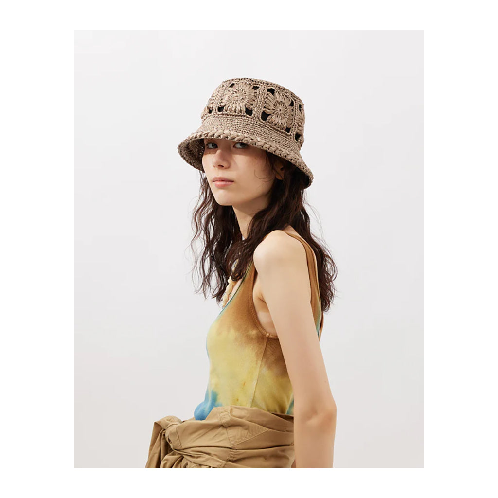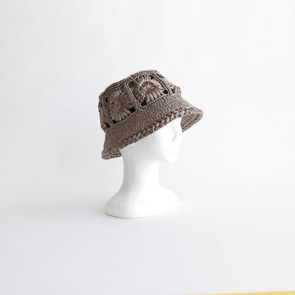 かぎ針で1つずつ手編みしたバケット型のハット。